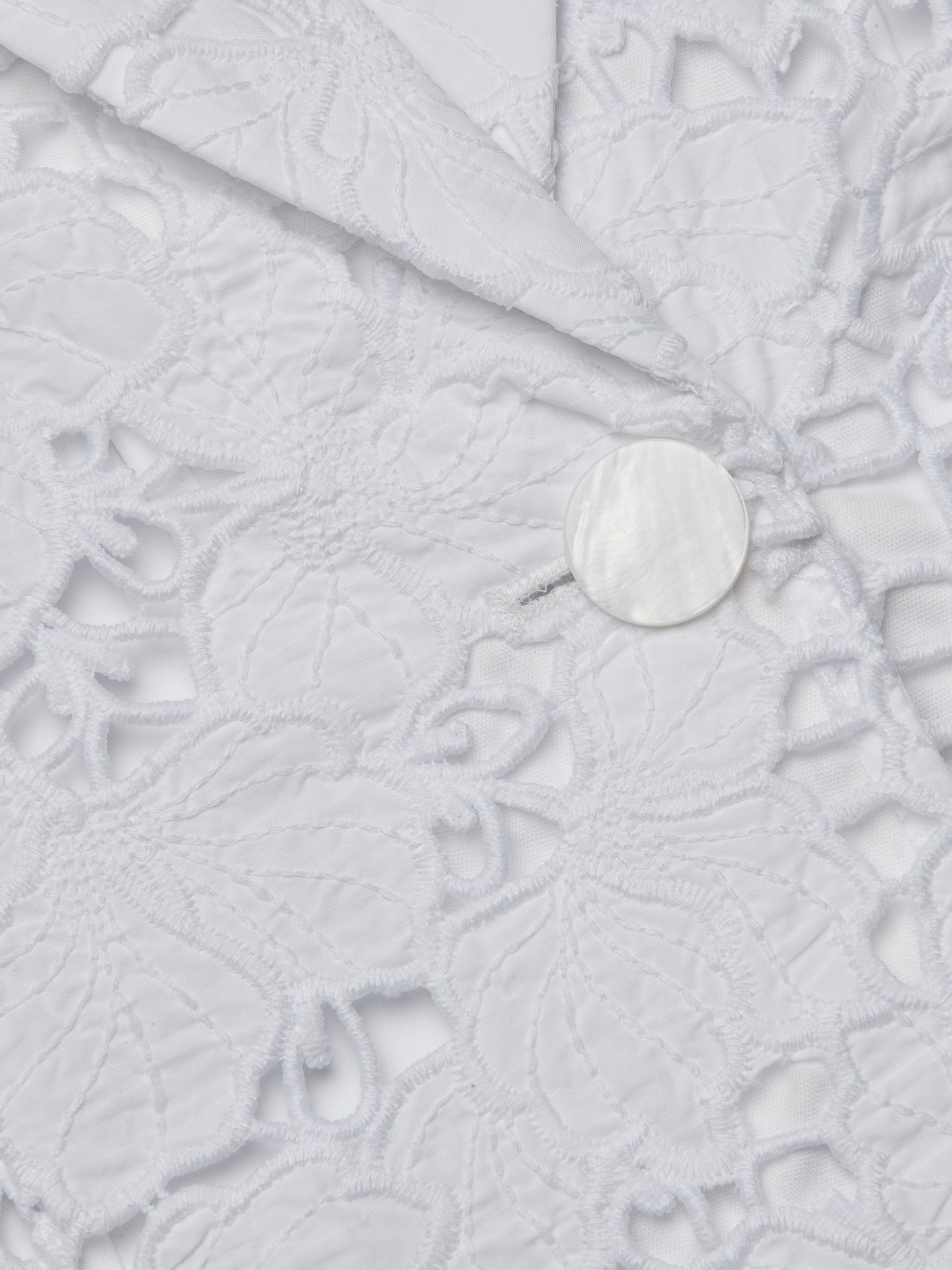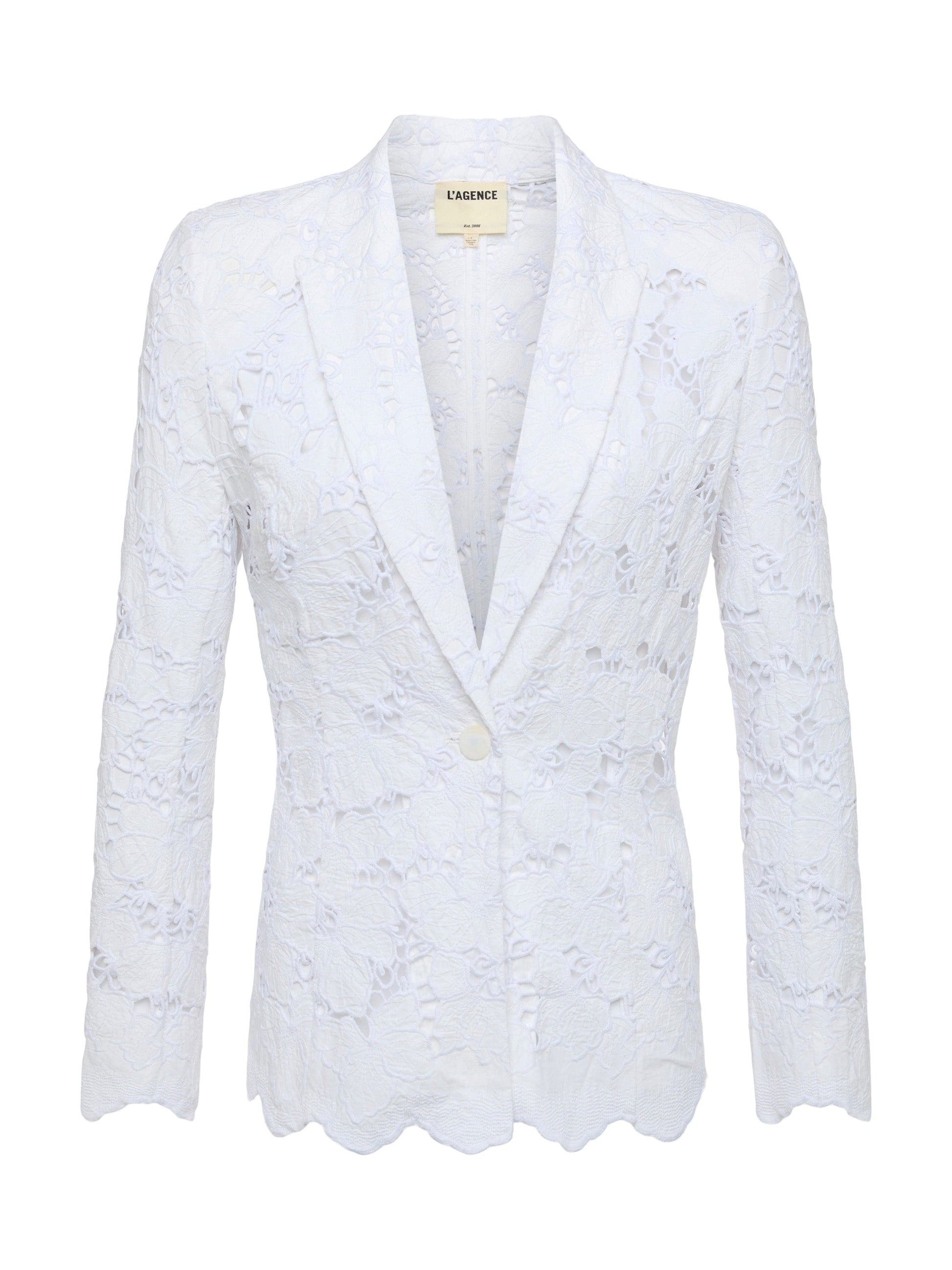 The ultimate single-breasted blazer, now in a gorgeous white lace.