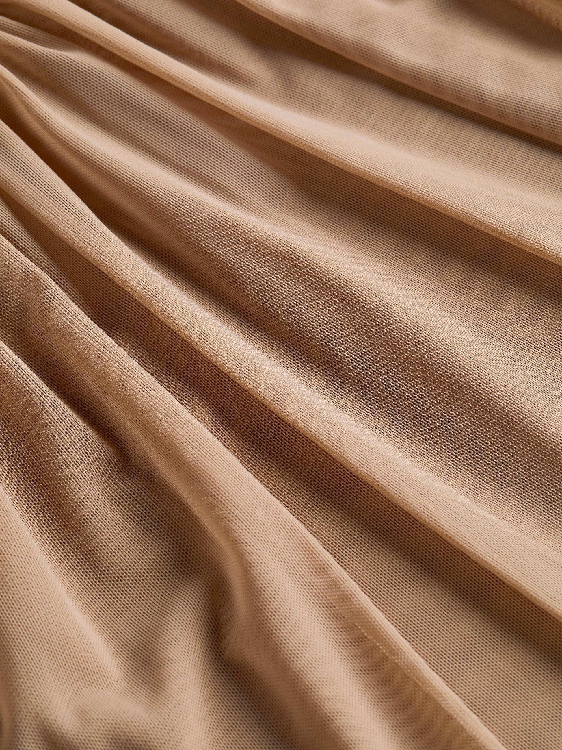 This subtly sexy bodysuit in light brown belongs in your wardrobe for all four seasons. Ruching adds feminine softness to a deep scoop-neckline. Adjustable straps allow for a fully customizable fit. Stunning on its own with slim denim. Layer under a full suit for a sharp office look.