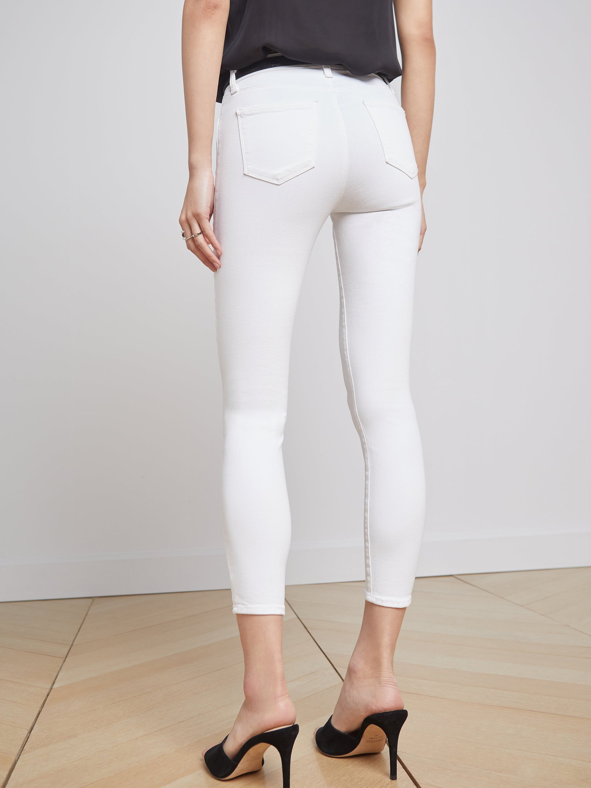 Our signature high-rise skinny jean crafted from premium, luxurious stretch denim in crisp, clean white. Tapered leg hugs from hip to ankle, while the contoured waistband defines and slims the natural waist. High-recovery fabric holds its shape, smoothing the silhouette without sacrificing comfort.
